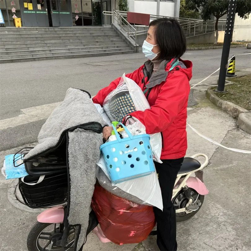 袁阿姨为学生搬运物资、发放口罩