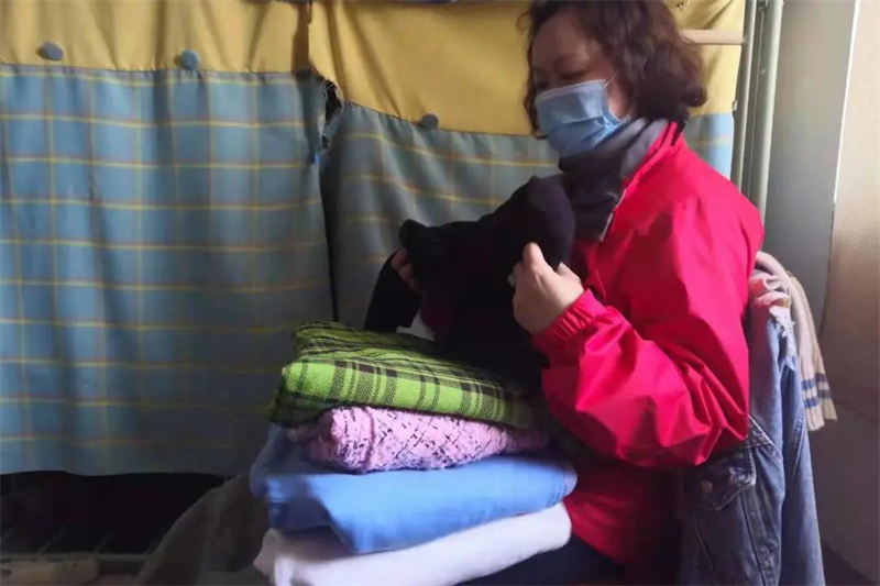 闫阿姨帮助未返校学生寻找衣物