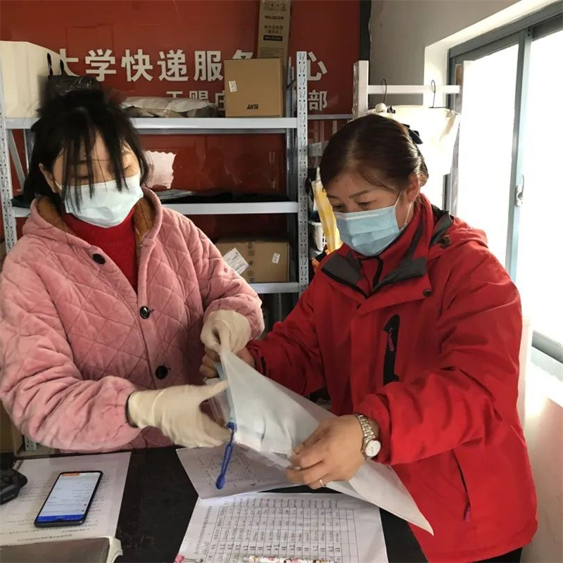 为提高同学们在宿舍大家庭的生活幸福感,她们主动关心每一位留宿学生,倾听学生们的心声。帮助学生们收取衣物、收发快递、发放防疫物资等,每天一遍又一遍地叮嘱每一位留宿学生做好个人防护,一件件平凡的小事凝聚了“宿管妈妈”们满满的爱意。在疫情面前,“宿管妈妈”的陪伴是最好的守护,让我们一起同心战“疫”,并肩同行。