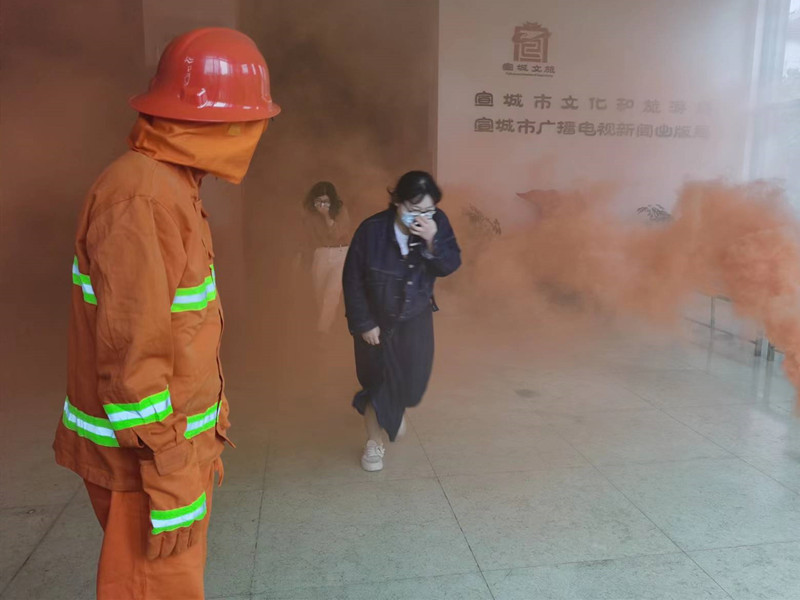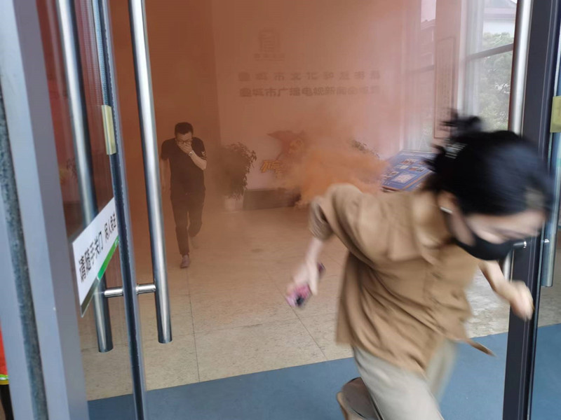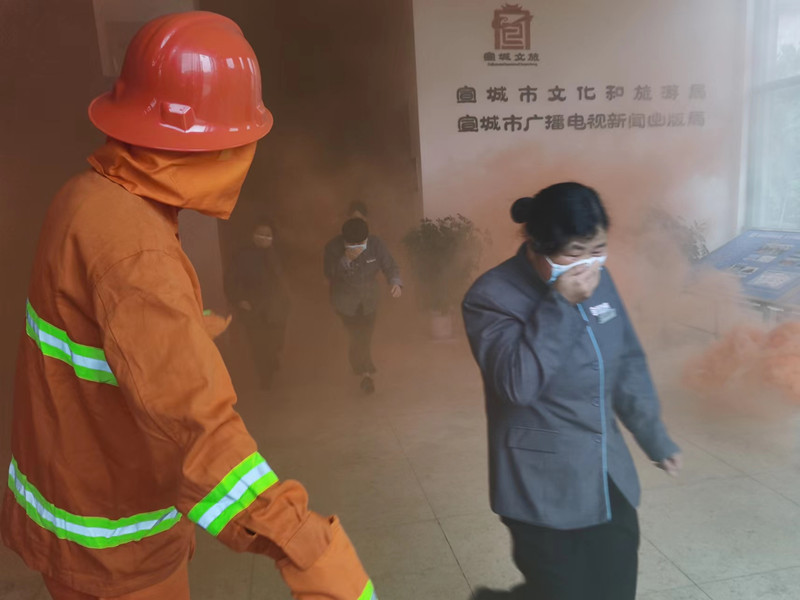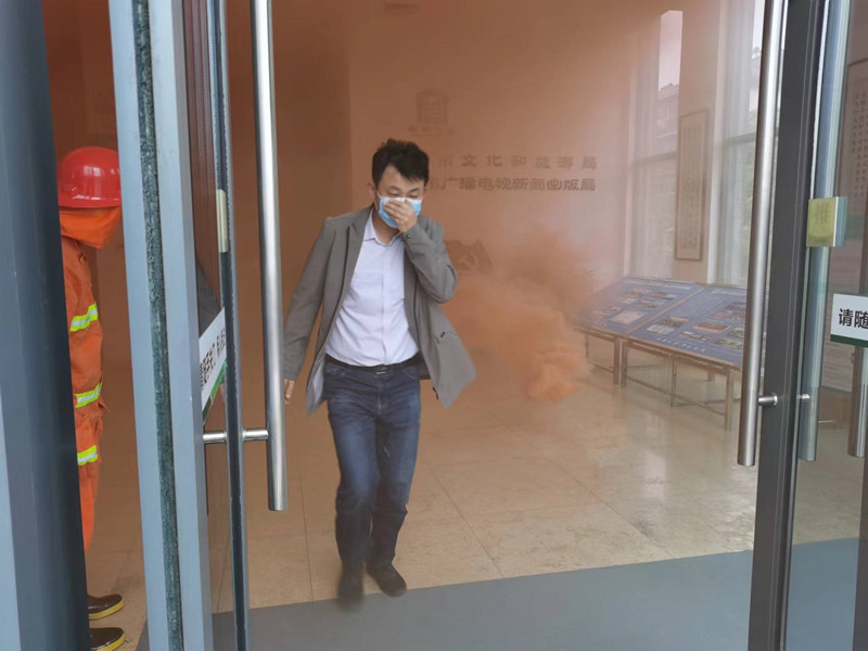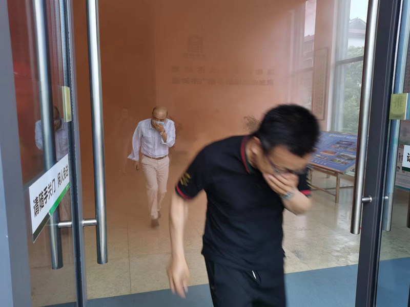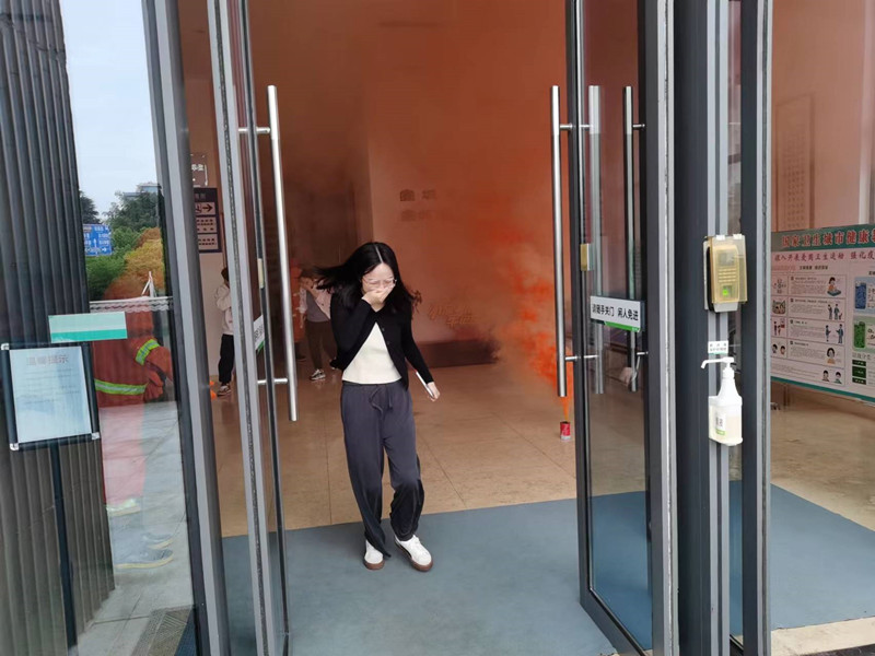 演练现场各楼层负责人员参照演习预定方案,迅速组织员工紧急疏散,逃生人员用手捂住嘴巴,弯腰,迅速有序地利用逃生通道及时逃离火灾现场,整个过程有条不紊的进行。