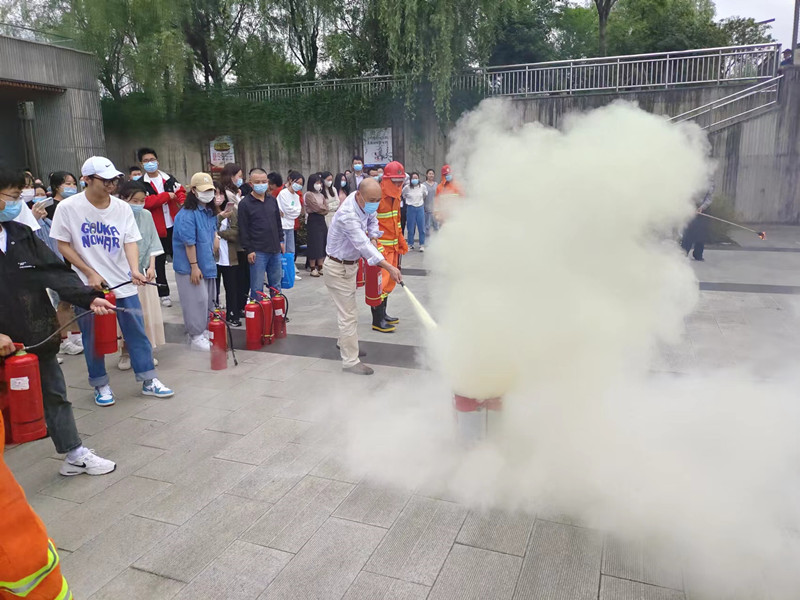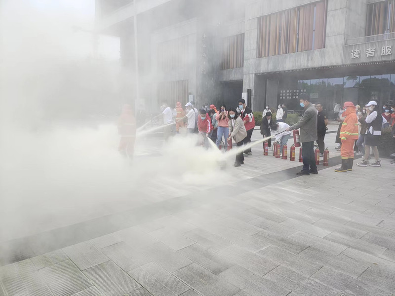 消防逃生演练结束后,为进一步巩固实践效果,图书馆项目部保安部还现场演示了灭火器使用的操作程序,并让大家亲身体会使用灭火器灭火的感受,使参训人员都能正确掌握灭火器的操作方法。