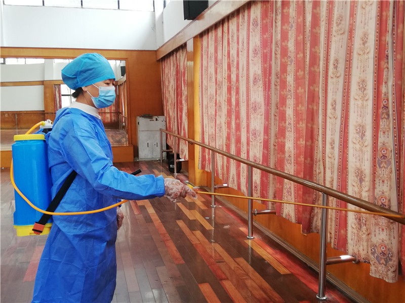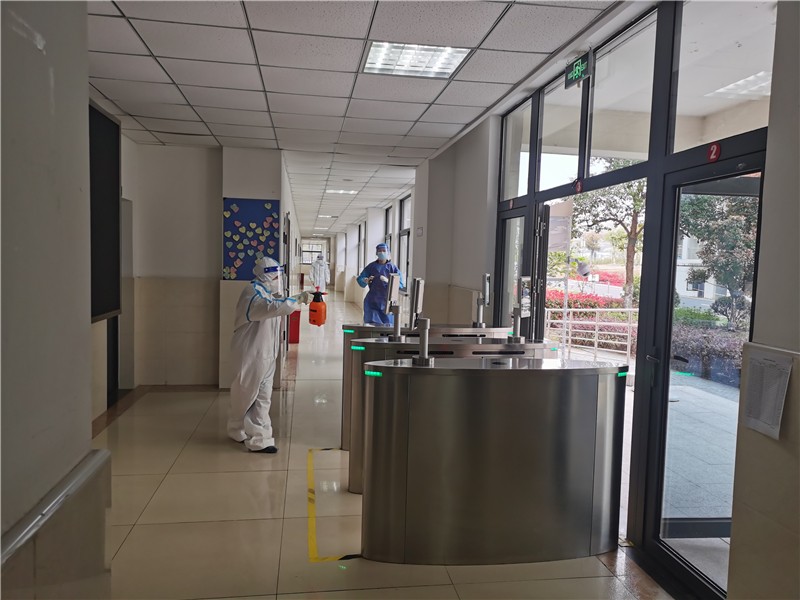 镇江技师学院项目部接到甲方通知后,立即召开动员会,所有员工态度积极、服从管理,接受安排的任务。从他们坚定的目光中,看到了对“疫情就是命令,防控就是责任”这句话的最完美的诠释,也是最平凡的表达。在学校他们担负着在校数千名师生、后勤保障人员的住宿任务。每天清晨5点,所有员工就开始了一天的工作,保洁员、宿管员在岗位上践行着“舍小家,顾大家”的承诺,平凡的他们默默的守护着校园师生安全墙坚不可摧。