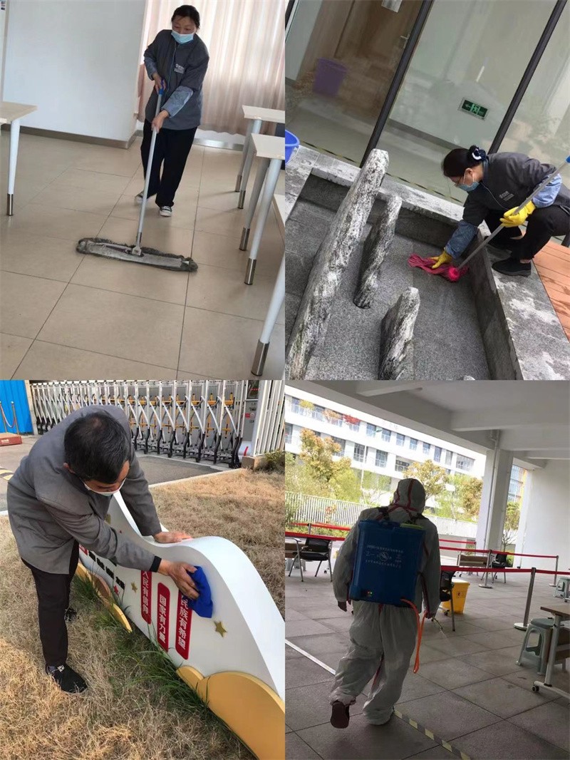 校园内,树木茂盛,繁花似锦;景观水池水平如镜,雕塑喷泉汩汩涌动,所到之处干净整洁,校园就像一个赏心悦目的大花园,这离不开保洁条线的员工每日默默的辛勤工作。上午施工刚结束的雕塑喷泉,碎屑遍地,到处粉尘。保洁条线全员突击,下午就以整洁美丽的形象迎接市领导的视察。物业员工优质、高效的工作表现得到了校长陈伟华的充分肯定。