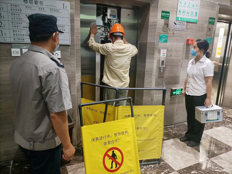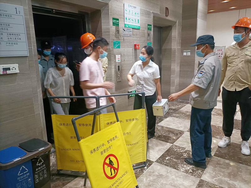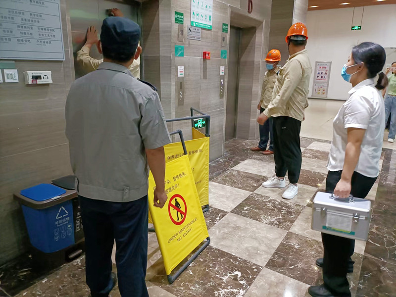 电梯维保人员接报后前往现场,设立安全警戒围栏,迅速制定应急救援计划,将现场解救被困乘客,确保被困乘客的安全。解救乘客之后,维保人员对电梯进行一系列安全检查和修复,并及时的处理故障点,恢复电梯运行。整个过程仅用了不到15分钟的时间,演练过程紧张而有序,做到了反应迅速、指挥有力、协调到位,达到了以练为战的预期效果。
