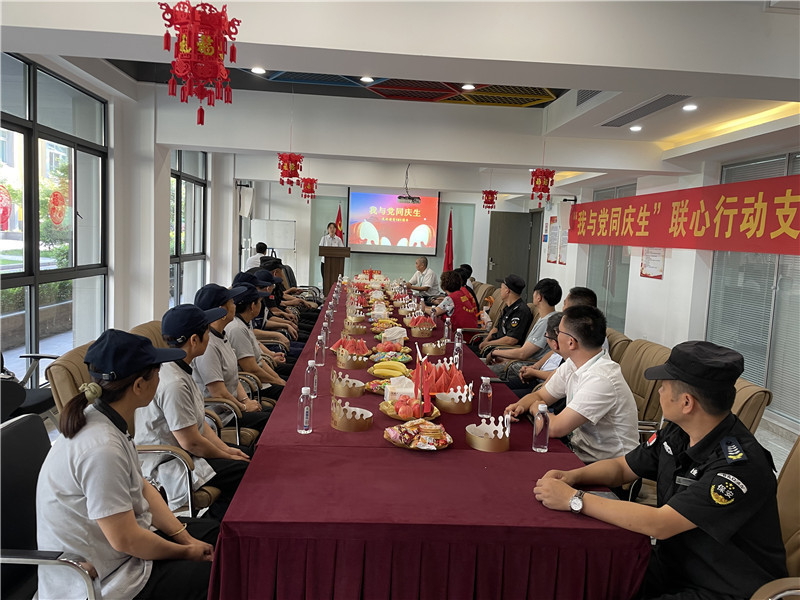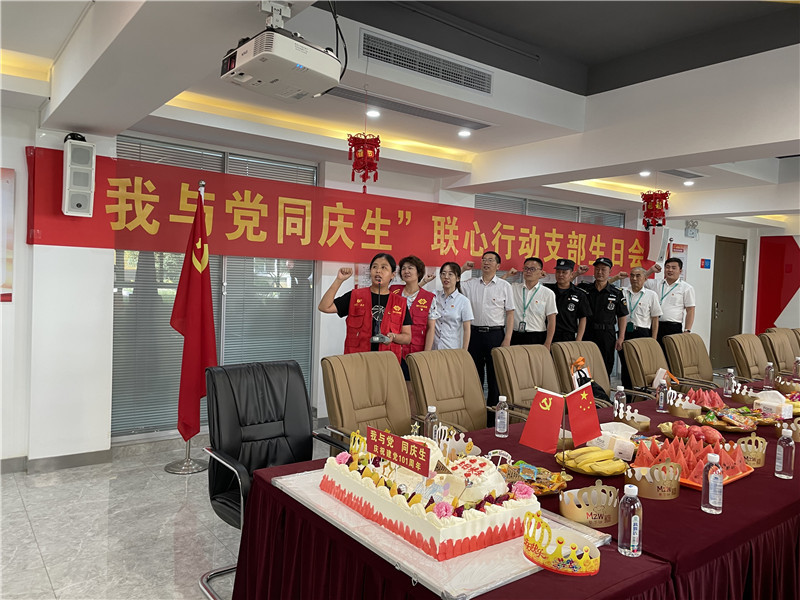 联心行动支部特邀通园路社区党建指导员和社区领导,联发公司张总、冯经理等领导与项目员工一道参加“我与党,同庆生”生日会活动。
