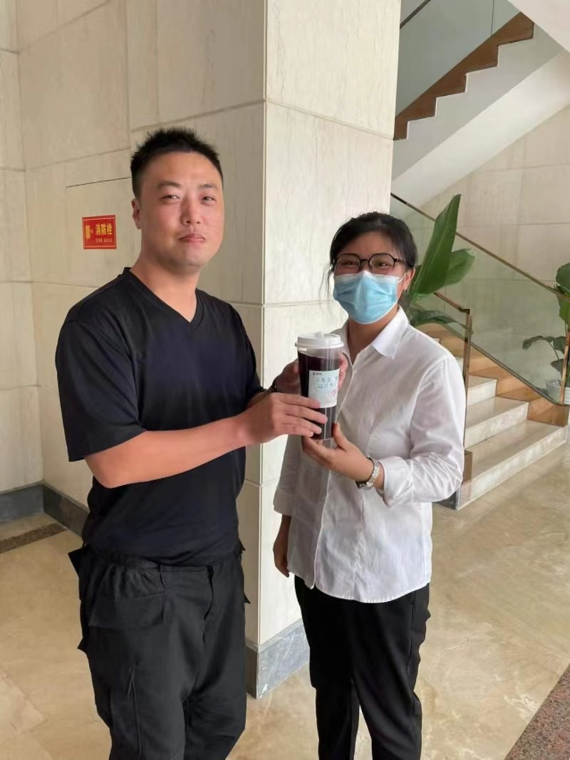 项目负责人亲手将一杯杯清凉爽口的酸梅汤送到业主的手里,业主们品尝后都对口味赞不绝口。