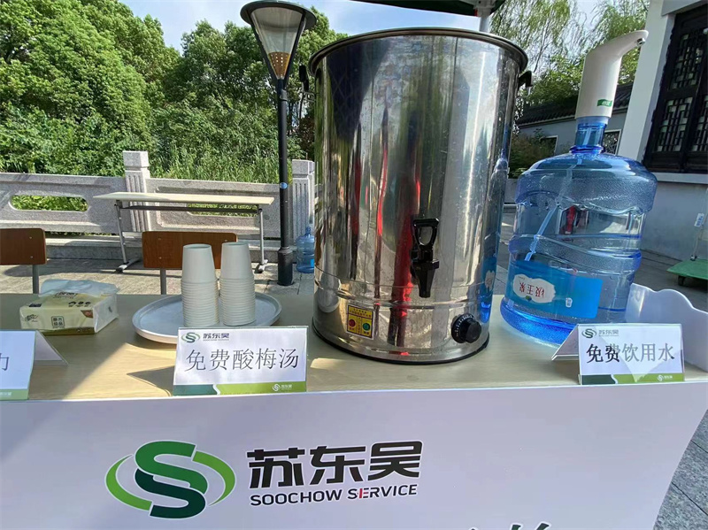 项目部在学校门口迎新点设立了服务站点,为报道新生及志愿者们免费提供饮用水、酸梅汤、防疫用品及急救药品等。服务站物业人员为进校新生提供咨询引导服务,我们用微笑诠释真诚,用热情迎接新生。