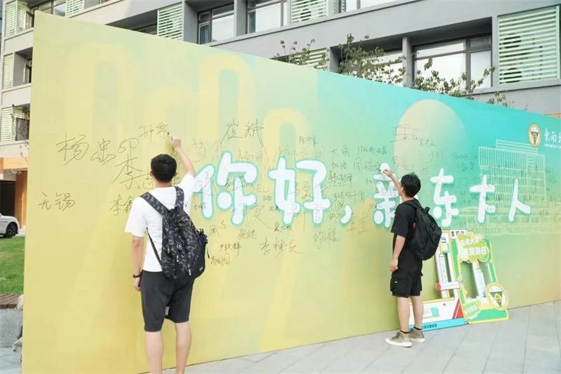 领导瞻前性的工作安排,员工坚持有条不紊的工作流程,志愿者们积极高昂的热情服务,我们的新生火速抵达宿舍区,正式办理完入住,留言墙上留下属于自己的印记。