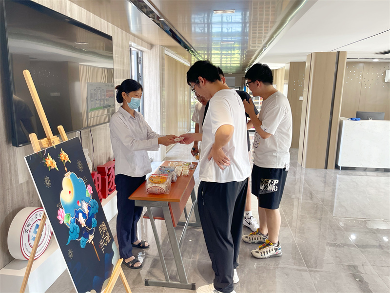 中秋节吃月饼、庆丰收、庆团圆、送祝愿,为了让同学们体会到学校就是一个大家庭,每一个人都是学校大家庭的成员,应当相互关心,相互爱惜,增强学生爱父母爱故乡爱祖国的感情。阳澄湖校区学生公寓项目于9月9日中午,在阳1、阳4、阳6、阳9、阳10号宿舍楼大厅为学生发放月饼。活动中同学们对各式各样的苏式月饼产生了非常浓厚的兴趣,迫不及待地挑选自己喜欢的口味并品尝。
