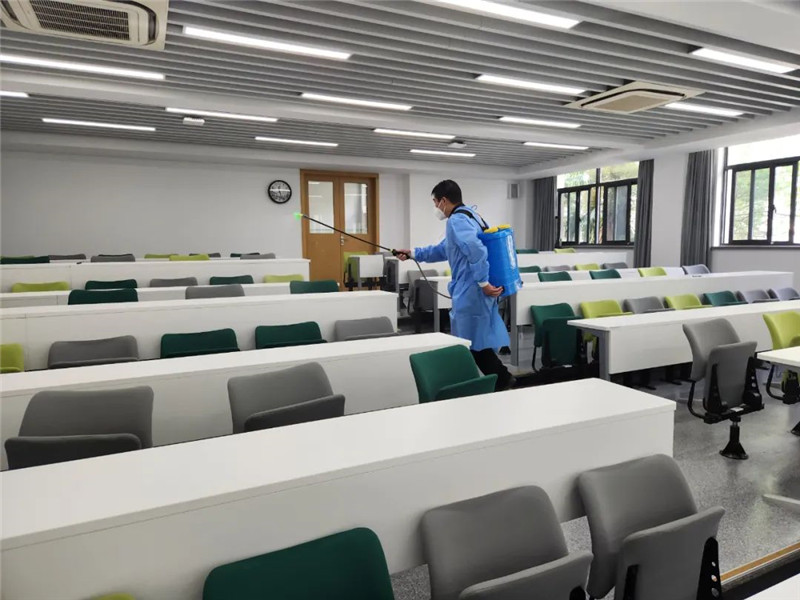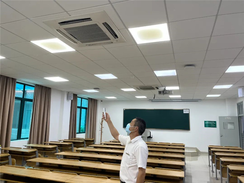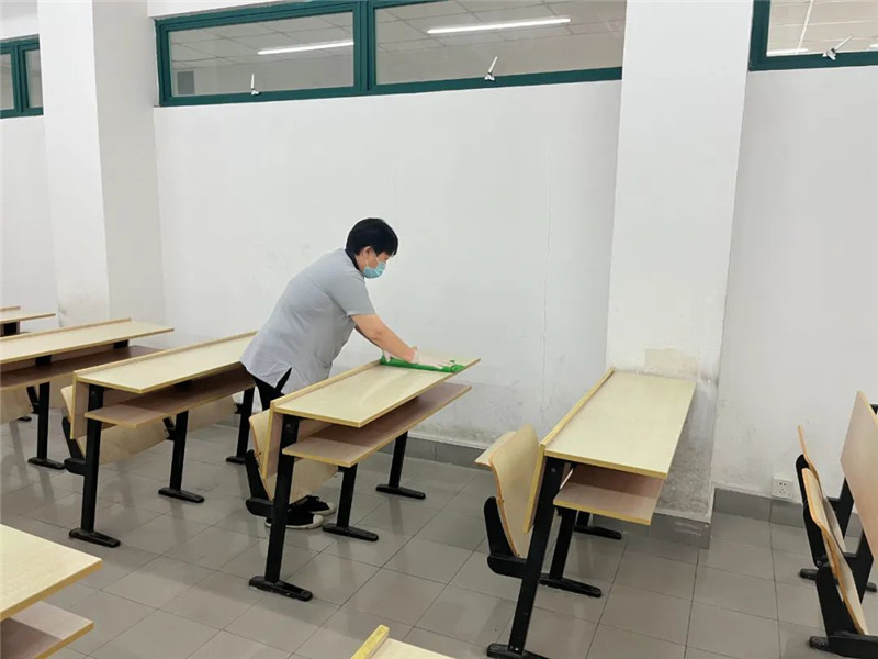 ▲考场预防性防疫消杀、时钟核对、各硬件设施检查