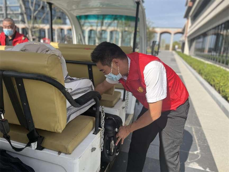 在新生到达学校内,项目安排了志愿者,井然有序的迎接新生。校内接驳车和三轮车穿梭于校门与宿舍楼之间,保障新生行李搬运流程的顺利,便于学生搬运行李至宿舍。
