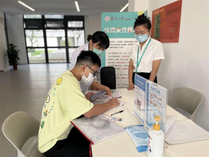 按照疫情防控相关要求,苏东吴与学校提前做好全方位的部署:规划路线、调动人员、防疫演练。因为准备充分,一切井然有序,新生到达学校后,路线指引、入校检验、测温、扫码……确保学生安全入校。