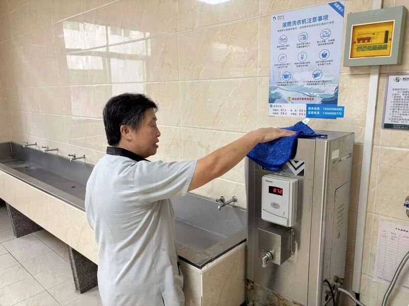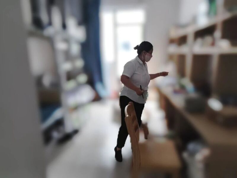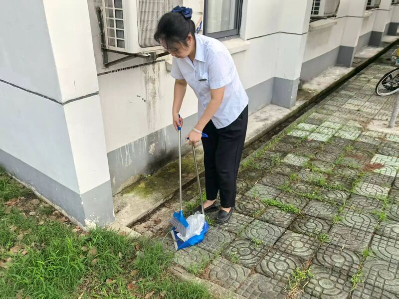 保洁阿姨做好细保洁,不辞辛劳打扫户外落叶,一丝不苟清扫室内灰尘。