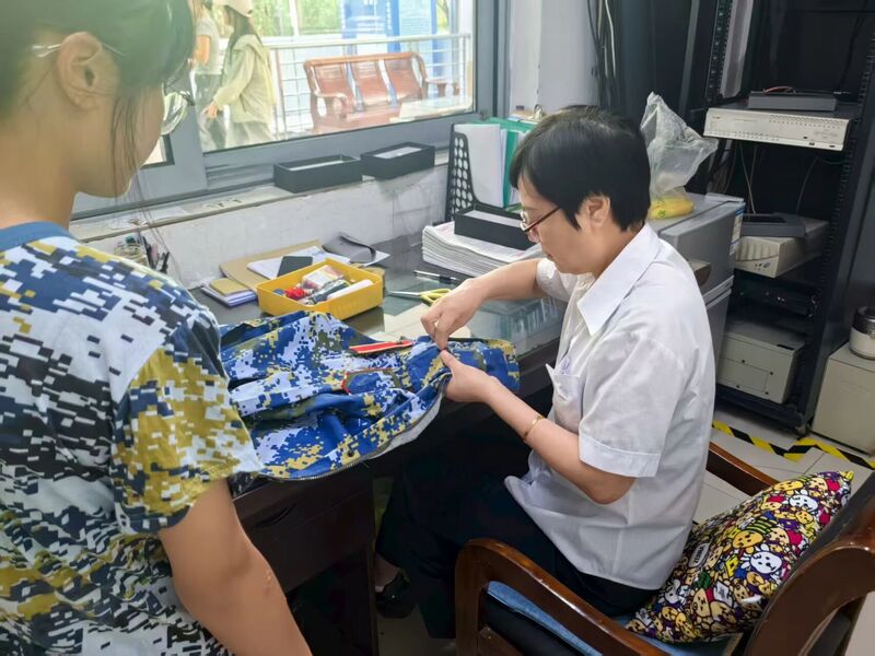 值班员主动帮同学缝补衣服,对受伤同学更是关怀备至,用行动传递温暖,让人倍感温馨。