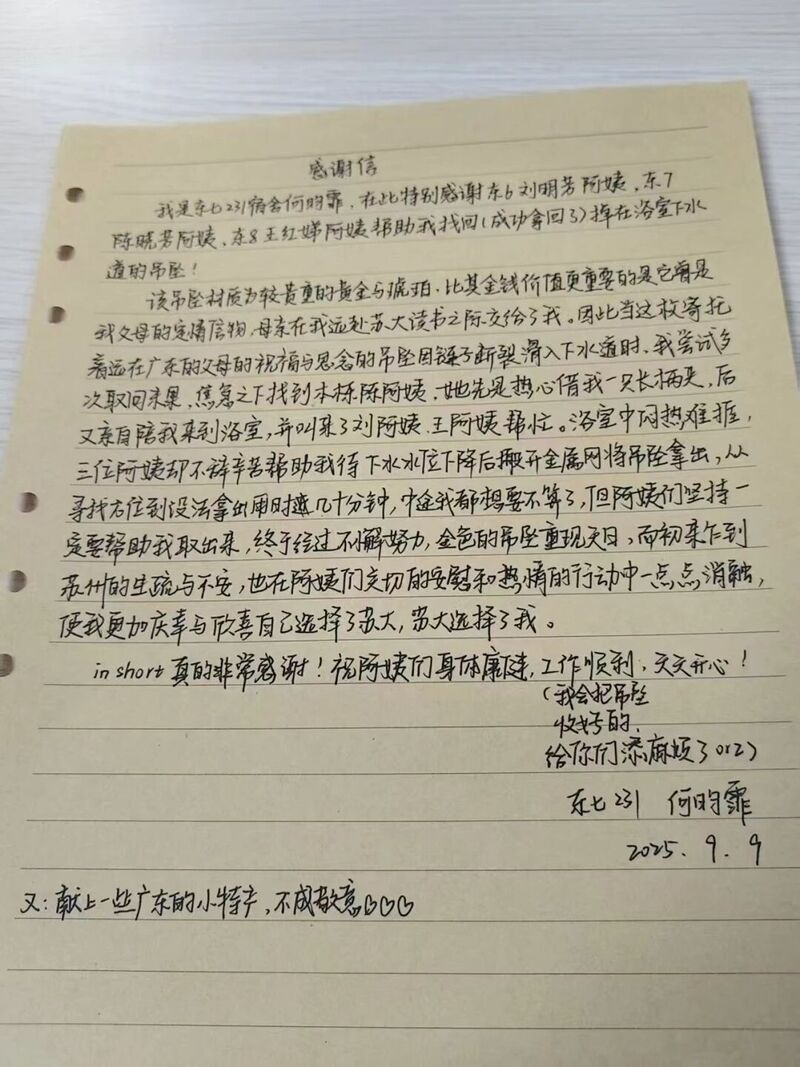 工作人员细致入微的服务,赢得同学们一致认可,一封封感谢信满载着诚挚谢意纷至沓来。