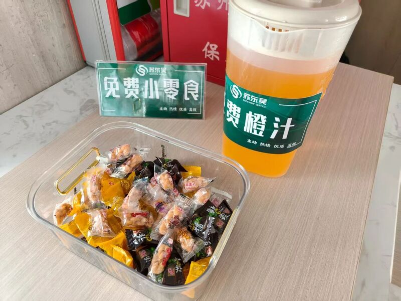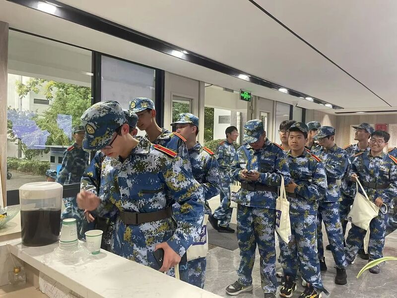 新生军训期间,考虑到天气炎热,为同学们提供免费酸梅汤和小零食。