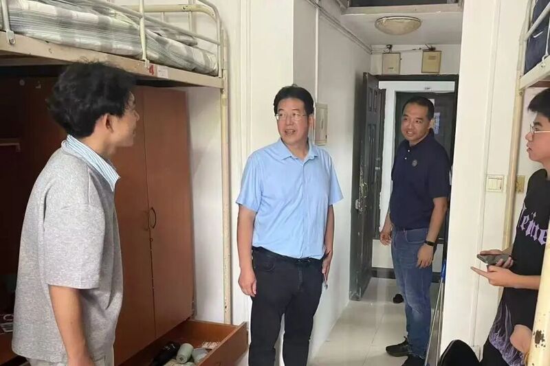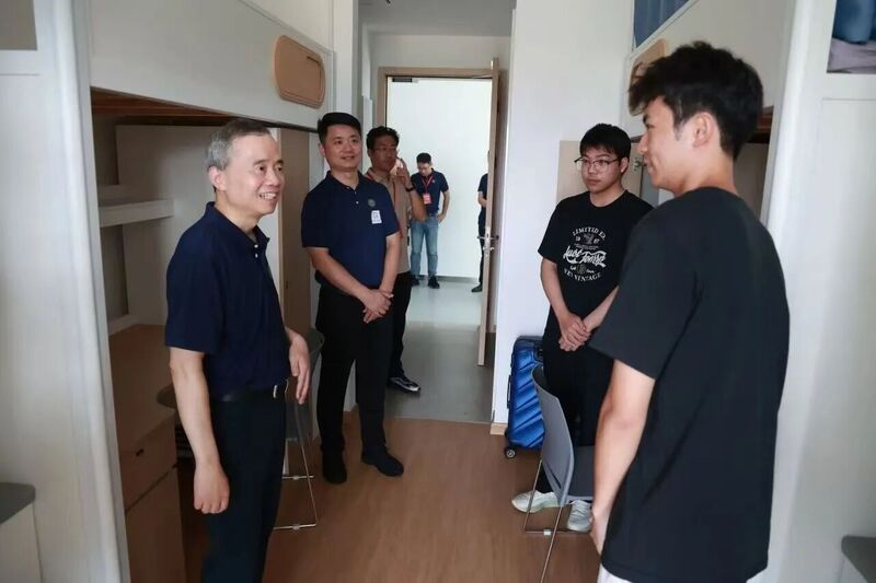 校领导来到学生宿舍迎新现场,详细了解新生报到情况及各项迎新保障工作,与学生、家长亲切交流,并鼓励新生敢想敢做、勇于创新,努力绘就精彩的青春篇章。
