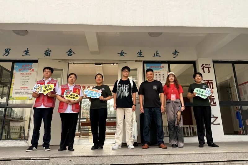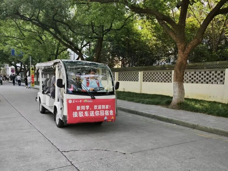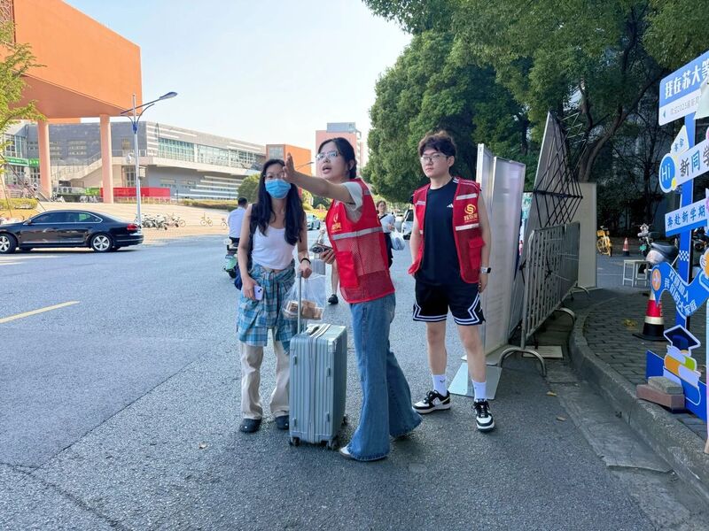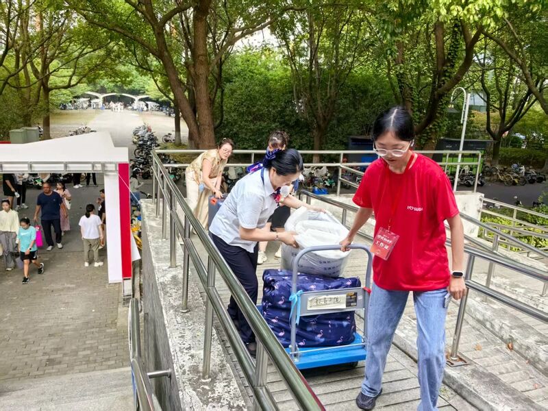 暖心服务:开学之际,暖心服务全面上线:不仅安排专属接驳车辆,主动帮新生接驳沉重行李,减轻报到奔波负担;志愿者也全程在岗,耐心为新生指引路线,并为家长清晰指明卫生间方向;同时还贴心设置家长休息区,让陪同的家长在等待时能安心休憩。