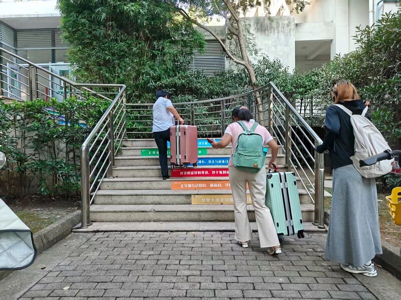 搬运行李:到校后,值班员和志愿者们稳稳地接过新生们手中沉甸甸的行李,用坚实的臂膀为新生们减轻负担。