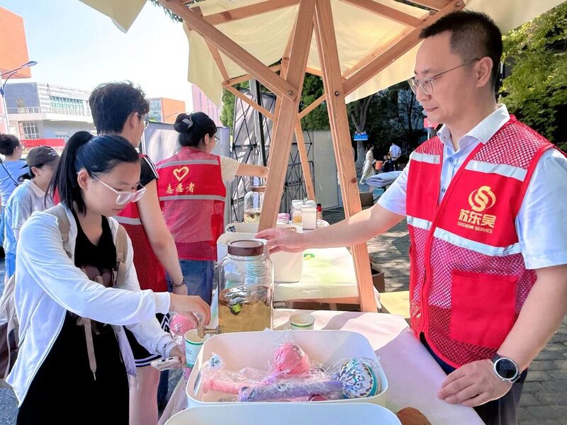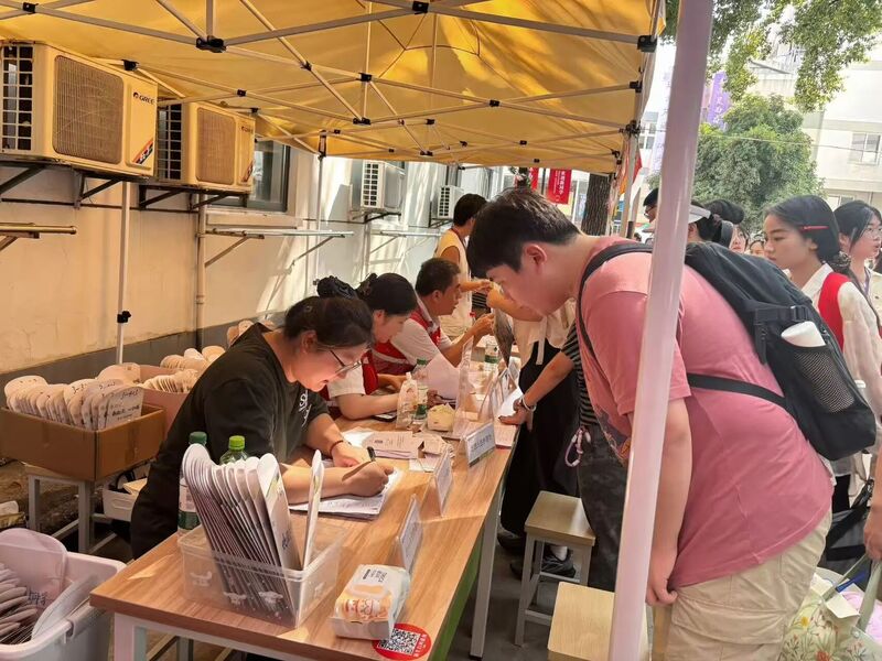 准备茶歇:考虑到近日天气炎热,新生们搬运行李颇为辛苦,精心为刚刚踏入校园的新生和家长们准备了茶歇,让大家能稍作休憩、补充能量。