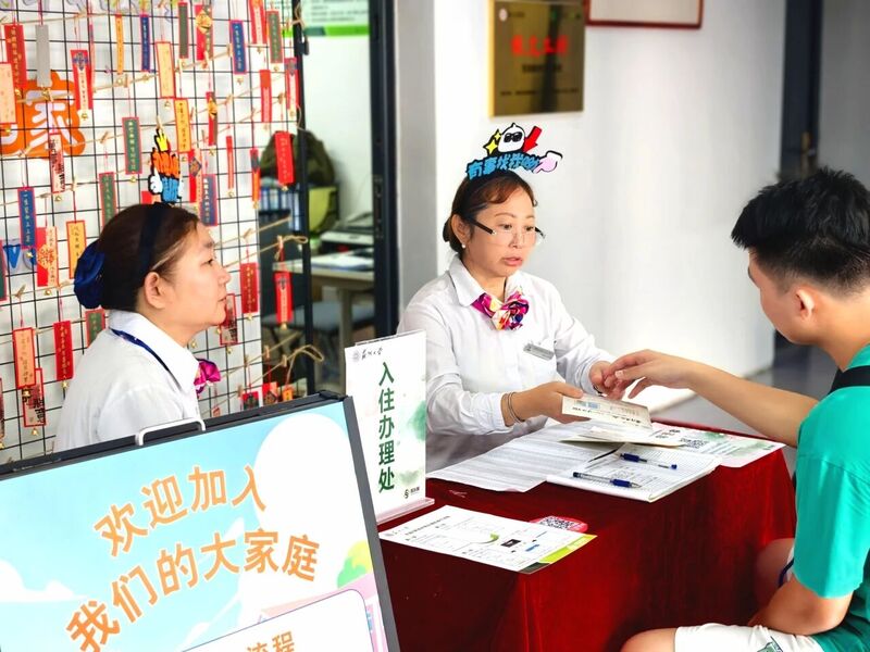 办理入住:开学办理入住现场热闹有序。志愿者们面带微笑,引导新生至对应宿舍楼。值班员认真核对信息、发放钥匙,耐心解答新生的疑问。