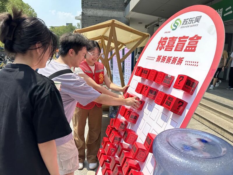 苏州大学独墅湖一期宿舍迎新正热。活动驿站里,新生能免费领“惊喜盲盒”,里面有定制精美生活礼盒、钢笔书签、chiikawa卡套等不同等级奖品及校园文创,让新生收获入学首份惊喜。