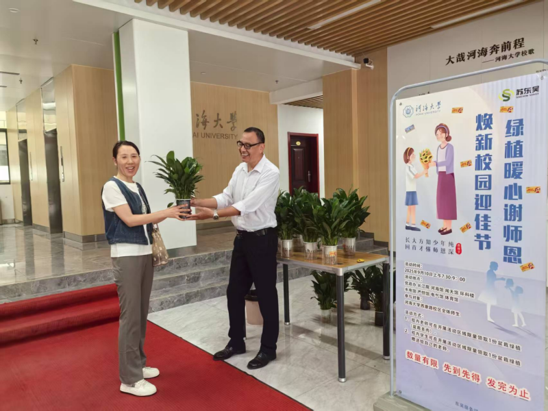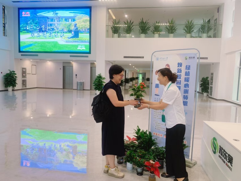 在第41个教师节来临之际,恰逢河海大学全力推进西康路校区施工修缮、筹备110周年校庆的关键节点。苏东吴河海大学项目部紧扣“主动、热情、优质、高效”的服务理念,以“焕新校园迎佳节,绿植暖心谢师恩”为主题,精心策划并开展教师节专属活动,用贴心服务传递对教职工的敬意与关怀。