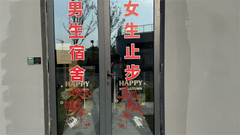 物业工作人员在宿舍楼的男女生玻璃门上张贴窗花,能看到充满童趣与创意的双节主题窗花。宿管阿姨还重点打造了宿舍公告栏的 “双节文化角”—— 在宿舍楼的公告栏内,宿管阿姨精心张贴了多篇中秋与国庆主题小故事和科普知识。其中,中秋神话故事涵盖了 “嫦娥奔月”“玉兔捣药” 等传统民俗故事,让学生在阅读中了解中秋文化。国庆科普知识主要有国庆节的来历,同时还将国歌和义勇军进行曲也打印粘贴,进一步弘扬爱国精神。