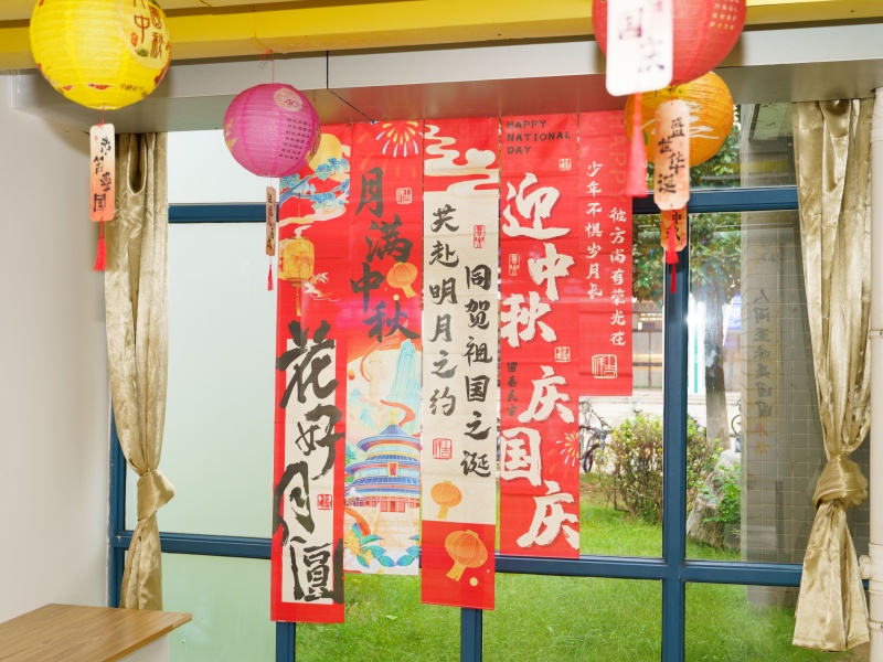宿管阿姨们精心装点每一处宿舍区大厅,从节日挂饰到氛围摆件,处处透露着巧思,让浓厚的双节气息萦绕在宿舍楼的每个角落。她们不仅希望用这份温暖,缓解新生初离家乡的思乡情绪,让同学们在宿舍里感 受到 “家” 的归属感;更想将爱国情怀与传统文化融入生活细节,在日复一日的耳濡目染中,悄悄强化大家的集体认同感与民族认同感。