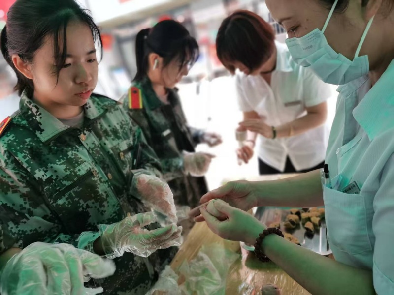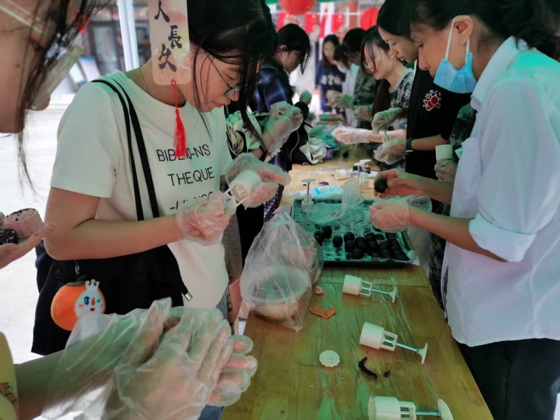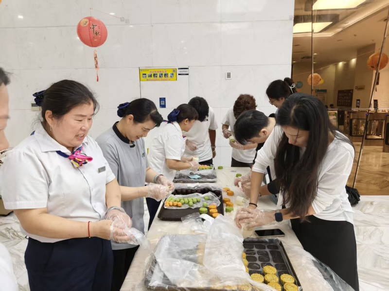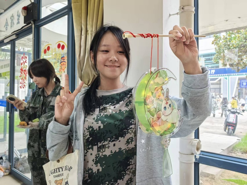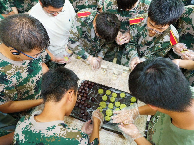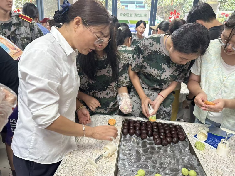 制作之余,阿姨们与同学们闲话家常,从假期安排聊到家乡中秋习俗,温馨的对话与爽朗的笑声交织,让整个现场暖意融融,也让双节的喜悦多了一份别样的温情。