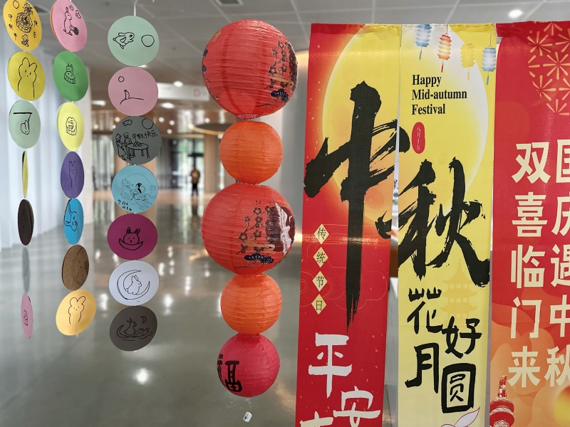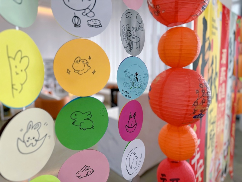 活动前期,现代工学院一楼服务大厅已悄然换上“中秋盛装”,柔和的灯光搭配节日条幅、灯笼挂件,提前营造出温馨雅致的节日氛围。活动现场,项目部提前备好卡纸、画笔等创作材料,明确创作主题围绕“中秋元素”展开,玉兔的灵动、嫦娥的温婉、月饼的香甜等均可入画,鼓励师生自由发挥创意。