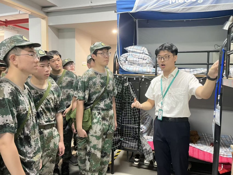 项目部高度重视,组建主要管理人员成立宣讲团队,在军训期间历时一周90多个批次,共接待新生5000余名,组织学生对“一站式”学生社区安全教育室和6S内务示范室进行参观学习。