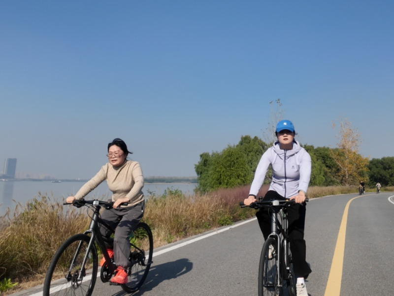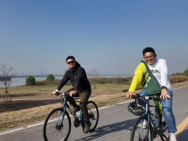 随着出发指令响起,骑行队伍宛如一道流动的风景线,沿着江心洲优美的环岛绿道迤逦前行。同仁们意气风发,车轮飞转,身影矫健。途中,大家时而你追我赶、挥洒汗水,诠释“拼搏”的进取姿态;时而并肩缓行、交流鼓励,彰显“同行”的深厚情谊。江岸风光与团队成员的身影交相辉映,构成一幅动感与和谐并存的精彩画卷,充分展现了东吴服务南京分公司团队蓬勃的朝气与强大的凝聚力。
