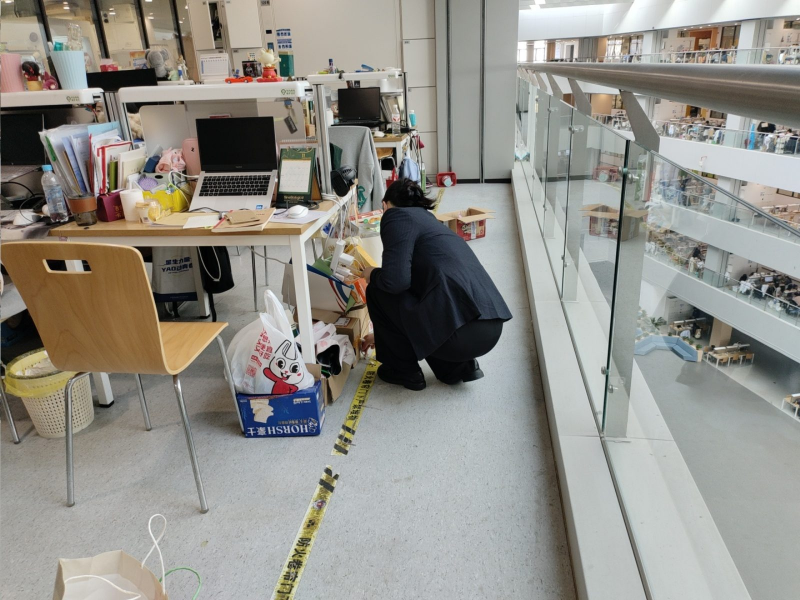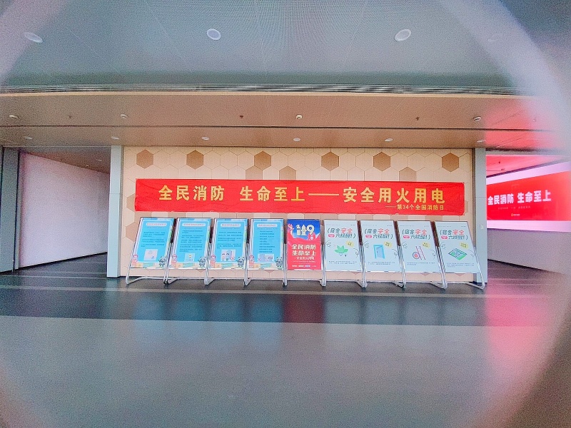 演练前期,项目管理人员高度重视,与学校保卫处消防科多次沟通,结合实验楼建筑结构及人员分布特点,细化制定演练方案。一方面,提前群告知师生演练事宜,在各出入口张贴通知与条幅,同时利用实验楼电子屏投放消防宣传海报,全面营造安全演练氛围;另一方面,全面清理防火门下杂物,核查消防通道畅通情况,对楼内灭火器、消防栓、应急指示灯等设施开展全方位检查,确保所有设备正常运行,为演练顺利开展筑牢坚实基础。
