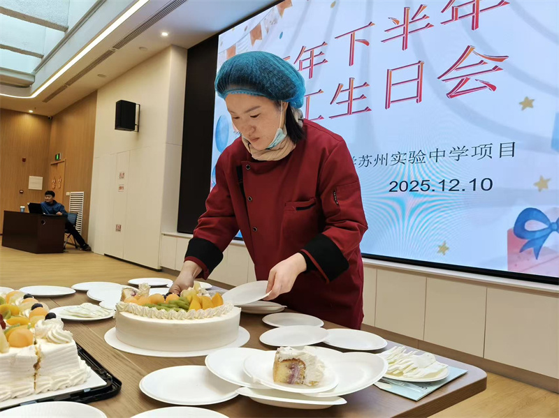 为传递公司关怀,增强团队凝聚力,让员工感受到集体的温暖与归属感,12月10日下午14:30,华中师范大学苏州实验中学项目2025年下半年员工生日会在艺术中心五楼温馨启幕。7-12月生日的员工们欢聚一堂,共同度过了一段欢乐祥和的美好时光。