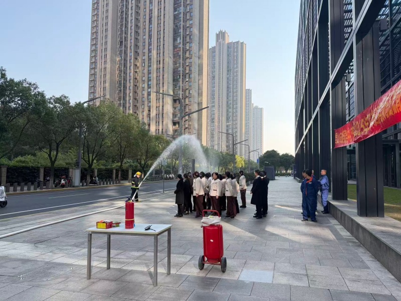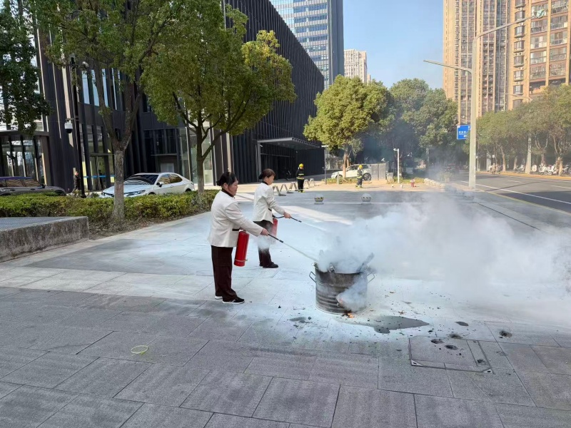 演练开始前,保安主管徐颖结合典型火灾案例,为全体参训人员进行了消防安全知识培训。从火灾的成因、火场逃生自救技巧,到灭火器、消防栓的正确操作方法,工作人员逐一细致讲解,并现场演示了灭火器“提、拔、握、压”的使用步骤,强调了日常用火、用电、用气的安全注意事项,让大家对消防安全知识有了更全面、更深入的理解。