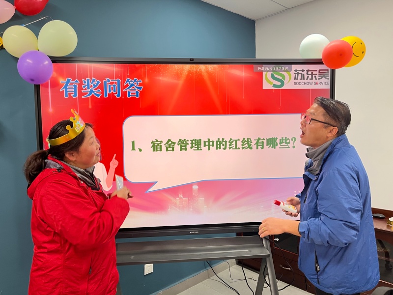 “我与项目共成长”有奖问答精彩开启,题目紧扣项目管理规范、服务流程标准及安全生产知识等核心内容。员工们踊跃抢答、对答如流,面对“触碰公司红线的有哪些内容”等问题时,更是应答精准、条理清晰,充分展现出对岗位职责和项目管理要求的熟练掌握。这场问答不仅点燃了现场氛围,更在欢声笑语中帮助员工巩固专业知识、强化服务规范意识,真正实现在互动中学习,在欢乐中提升。