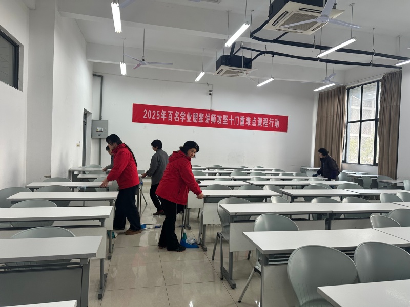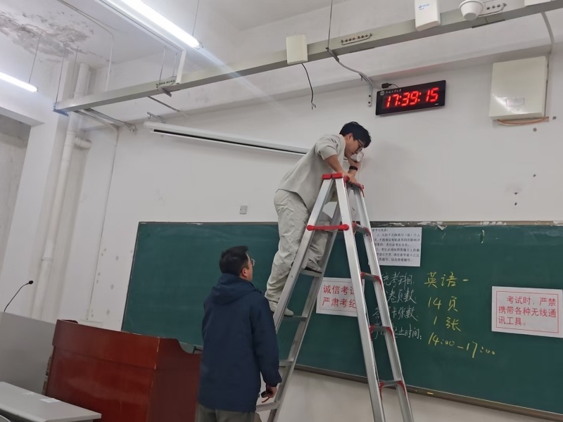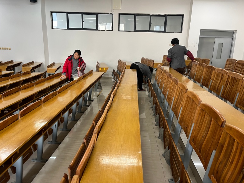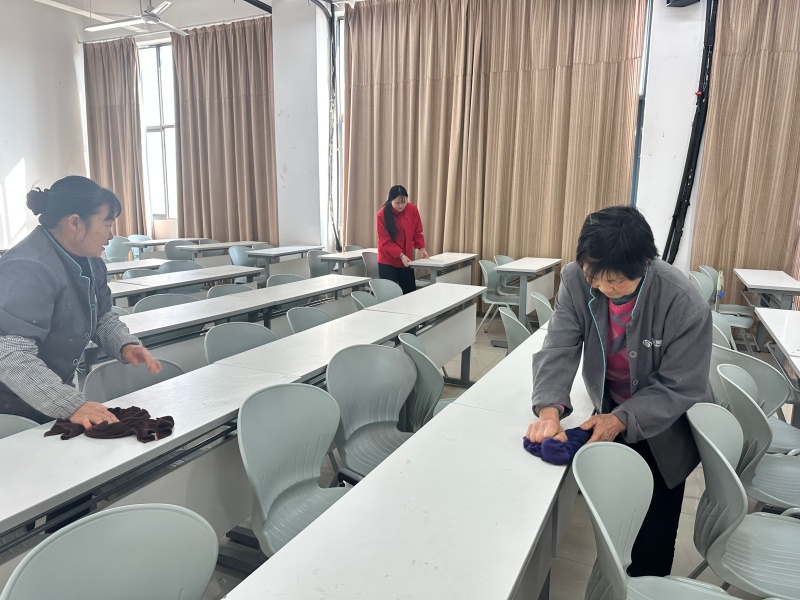 围绕考场环境优化与设施保障核心任务,项目部组织全员对教学楼 126 个考场的照明、饮水机、空调等设施设备开展逐一排查检修,确保各类设备运行正常。同时,对考场及周边区域进行深度保洁,不留一处卫生死角;同步规范考场周边环境秩序,营造安静有序的备考氛围。此外,项目部提前备齐备足应急物资,制定交通疏导、突发情况处置等专项应急预案,进一步明确责任分工与应急响应流程。一系列扎实举措,全面打造出整洁、安静、舒适的应考空间,助力学子们心无旁骛奔赴考场、从容应战。
