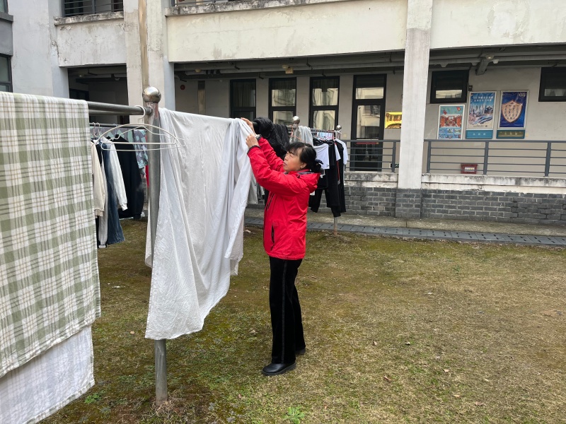 她们是学生生活里最暖心的“贴心人”,于细微之处,把关怀悄然传递。忘带钥匙的同学,总能第一时间得到她们的帮助;衣物不慎破损,她们会顺手缝补妥帖;身体偶感不适的学生,更能收获她们及时的照料与关怀。她们还会主动提醒天气变化,遇上突如其来的阵雨,晾晒在外的衣物早已被她们细心收好、妥善存放。