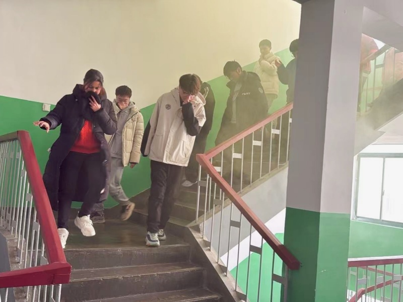 为保障演练安全、有序、高效推进,学校相关职能部门与各学院提前开展周密部署与全面动员。演练启动前,负责老师与工作人员向全体参演同学细致讲解了疏散路线、安全集结点位、演练注意事项,以及火场逃生的基础常识,着重强调了本次演练的严肃性与必要性,要求同学们以认真严谨的态度全程投入。值得一提的是,我校留学生也积极参与本次演练,校保卫处周源副处长还与同学们现场交流互动,细致宣讲消防安全知识要点。