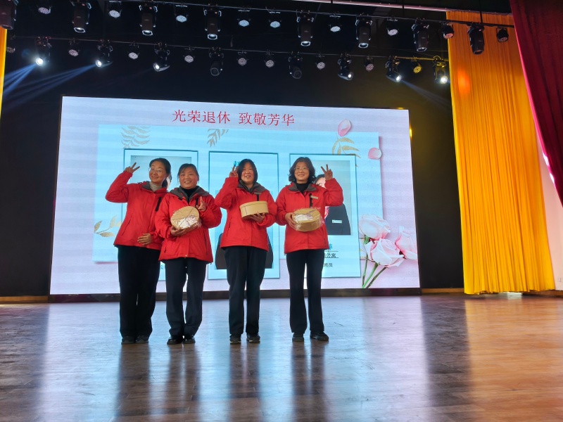 热闹氛围中,暖心彩蛋温情上线。项目部为五位光荣退休的阿姨送上鲜花与真挚祝福,感谢她们多年来的辛勤付出与默默坚守,这份专属敬意让现场暖意倍增。