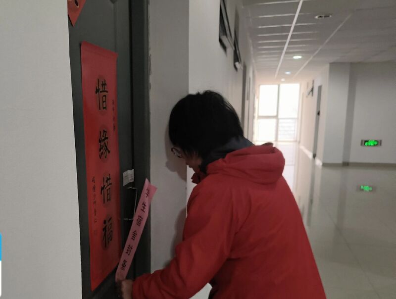 寒假即将来临,同学们陆续返家,宿管阿姨们尽心尽力检查宿舍状况,防范用电隐患,为无人宿舍贴上封条,守护宿舍楼的安全温馨。