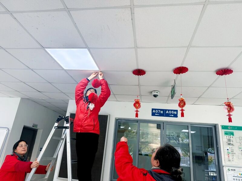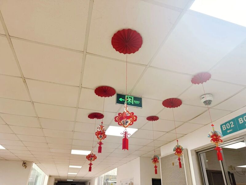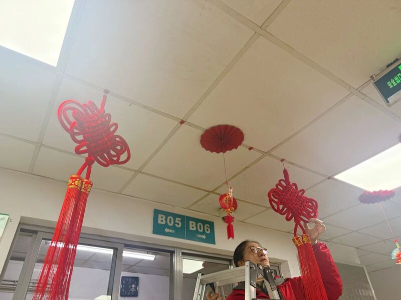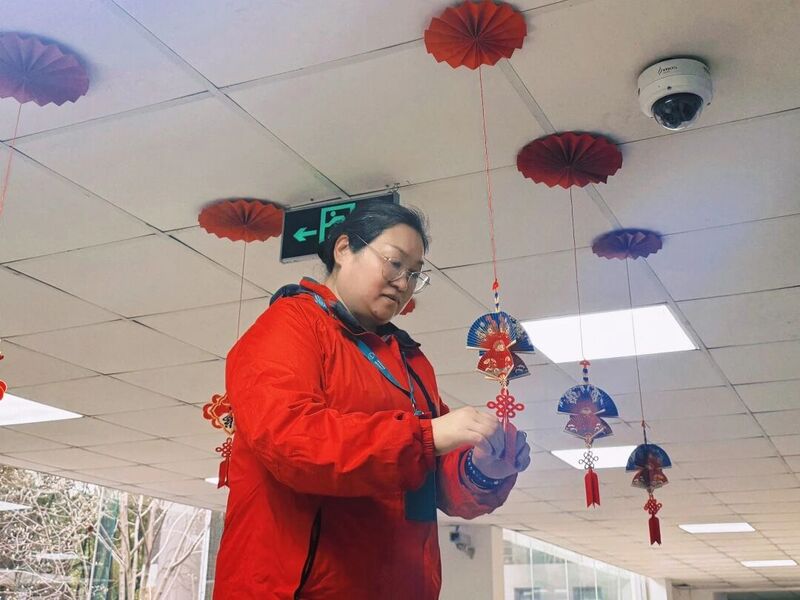 元旦前夕,宿管阿姨们便开始精心装扮宿舍楼。她们在楼道里挂起火红的灯笼,在玻璃窗上贴上精美的剪纸,还将寓意吉祥的福字认真贴在每层楼的显眼处。这些用心的布置让宿舍楼焕然一新,充满了喜庆祥和的节日氛围。