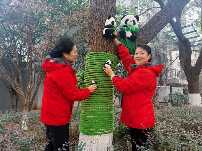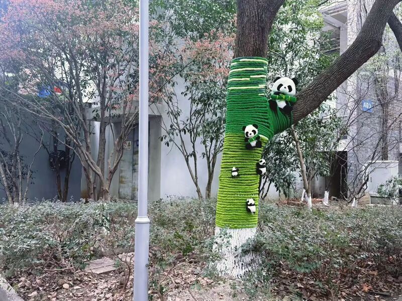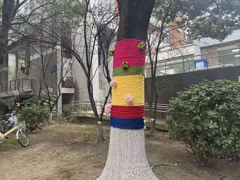 寒冬来临,宿管阿姨们细心为宿舍楼前的树木“添衣”。她们将厚厚的麻布和草席仔细缠绕在树干上,为每棵树系好温暖的“冬装”。这项传统而温暖的护树工作,不仅保护树木安然过冬,也让路过的同学感受到这份对自然的细致呵护——就像阿姨们平日照顾学子般,温柔而坚定。