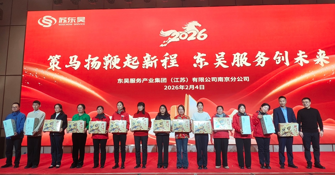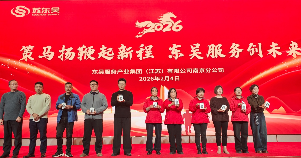 砥砺奋斗辞旧岁,携手同心谱新篇。 随着2025年圆满收官,2026年的崭新华章已然奏响。2026年2月4日,东吴服务产业集团(江苏)有限公司南京分公司召开2025年度总结表彰大会,全面总结过去一年的进步和成就,共同展望新一年的机遇与发展。