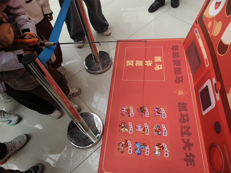 物业工作人员提前布置好活动区域,提前安装好钓竿,将寓意马年顺遂、万事胜意的“OK马”玩偶摆放于许愿区内,旁边的新年愿望点简洁醒目,各类春节小礼物整齐陈列,处处洋溢着浓厚的节日气息。读者只需拿起钓竿控制抓机,从许愿区内成功抓取3个“OK马”玩偶,并将其放置在指定的新年愿望点,即可前往客服处领取扫帚挂件等春节小礼物一份,每一份小礼物都承载着物业对读者的新春期许。