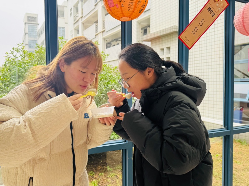 活动全程,宿管阿姨们分工协作、忙而有序,有的在操作间精心煮制汤圆,让热气腾腾的甜汤驱散初春的微凉;有的在现场细心维护秩序,引导大家有序参与各项活动,用贴心的举动为整场活动保驾护航。师生与宿管人员三方携手互动、其乐融融,平日里的宿舍区,此刻化作了充满温情与烟火气的大家庭。