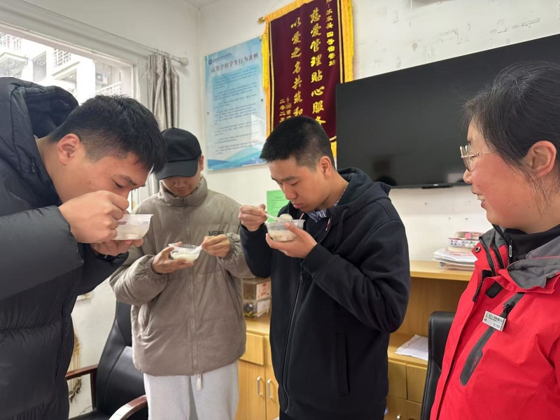 考虑到返校备战技能大赛的同学们,每日清晨便投入紧张训练,无法按时到活动现场品尝汤圆,项目部贴心安排宿管阿姨提前煮制汤圆,将一碗碗热气腾腾的汤圆细心分装,送到早起出门训练的学子手中。软糯的汤圆裹着香甜的馅料,一口下去,暖意直达心底,既驱散了冬日的寒意,更弥补了学子们佳节无法与家人团圆的遗憾,让校园关怀触手可及。