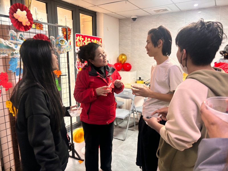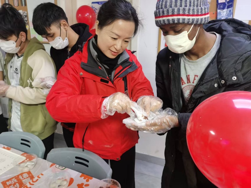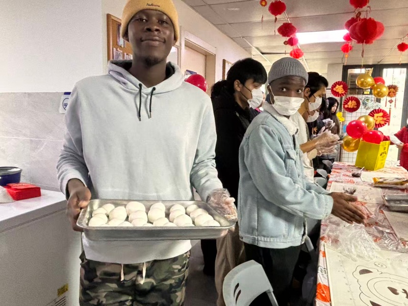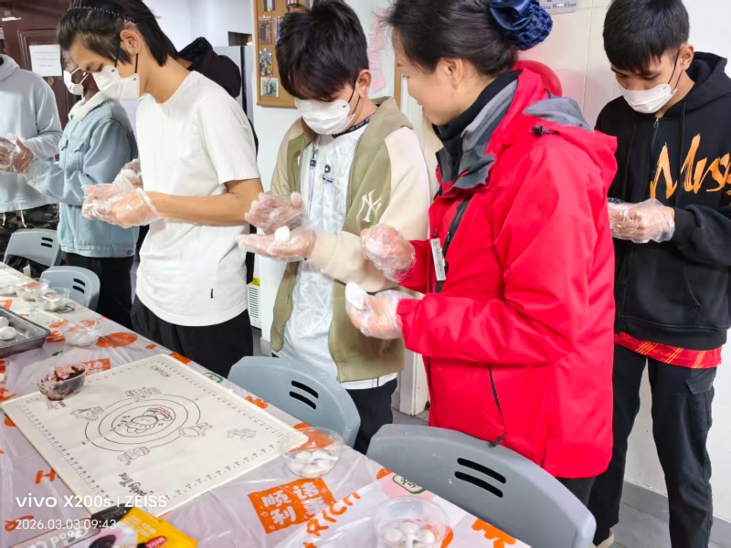 活动现场,项目部还特别设置了包汤圆教学环节,让同学们沉浸式体验传统民俗的乐趣。宿管阿姨早早备好糯米粉、各色馅料等材料,化身“指导老师”,手把手教同学们包汤圆,从揉面、揪剂、取馅到搓制成型,每一个步骤都细致讲解、耐心指导。同学们热情高涨、踊跃参与,留校留学生也纷纷加入其中,跟着阿姨们认真学习。大家亲手制作的汤圆下锅煮熟后,围坐在一起品尝自己的劳动成果,在欢声笑语中感受中国传统节日的独特魅力,体会到独属于校园的“家”的温暖。