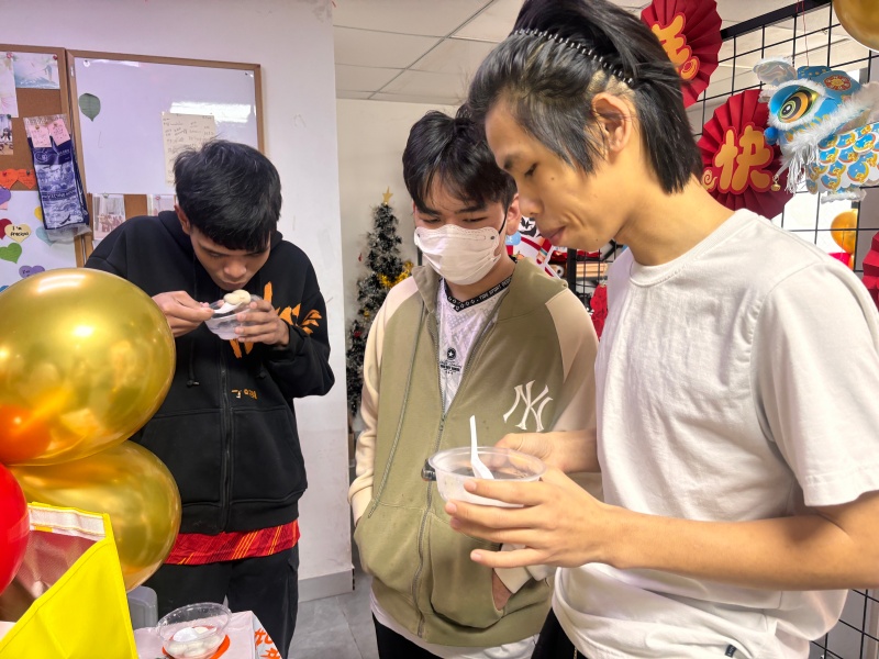 为让同学们感受到满满的节日诚意,项目部将服务细节落到实处,提前开启全方位筹备工作。活动前期,工作人员对活动场地进行全面清扫,确保环境干净整洁;同时精心布置现场,红彤彤的灯笼高高悬挂,自制的醒狮灯笼错落摆放,各式温馨装饰点缀其间,让活动室瞬间洋溢起浓郁的元宵佳节氛围。物资筹备上更是细致入微,不仅备齐锅具、碗碟、勺子等全套烹饪用具,还精心挑选了丰富多样的汤圆——经典的芝麻、花生、豆沙馅一应俱全,清甜的水果馅缤纷多样,传统白汤圆与彩色汤圆相映成趣,全方位兼顾不同学生的口味偏好,为活动的顺利开展筑牢保障。